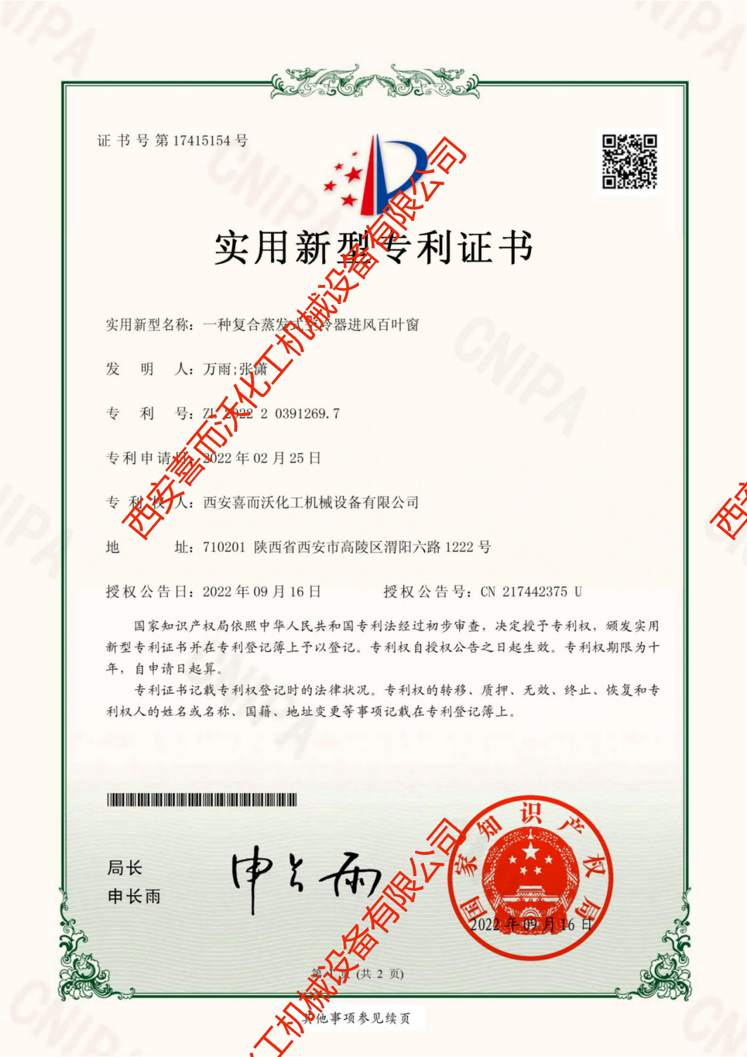 专利证书